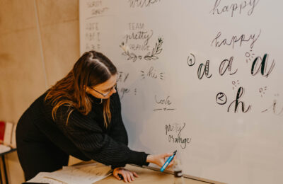 …und vor 9 Jahren habe ich das Handlettering und die Kalligrafie für mich entdeckt. Mittlerweile arbeite ich auf Events für internationale Unternehmen wie Hermés, Starbucks und H&M Home zusammen und gebe Handlettering Workshops in Berlin.