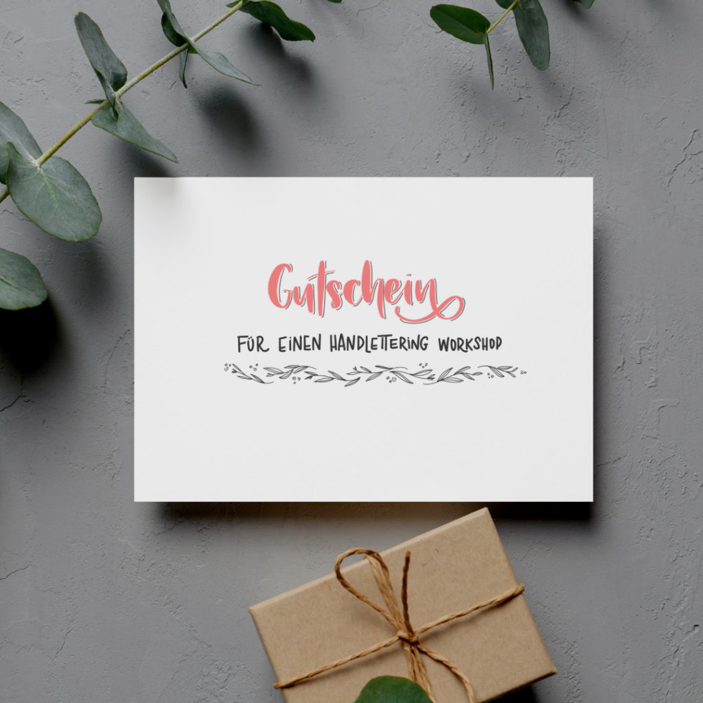 Dein Gutschein kann für ein Handlettering Workshop genutzt werden oder das DIY Handlettering Starter Set für zu Hause. Das perfekte Geschenk für alle, die was kreatives und besonderes verschenken wollen.