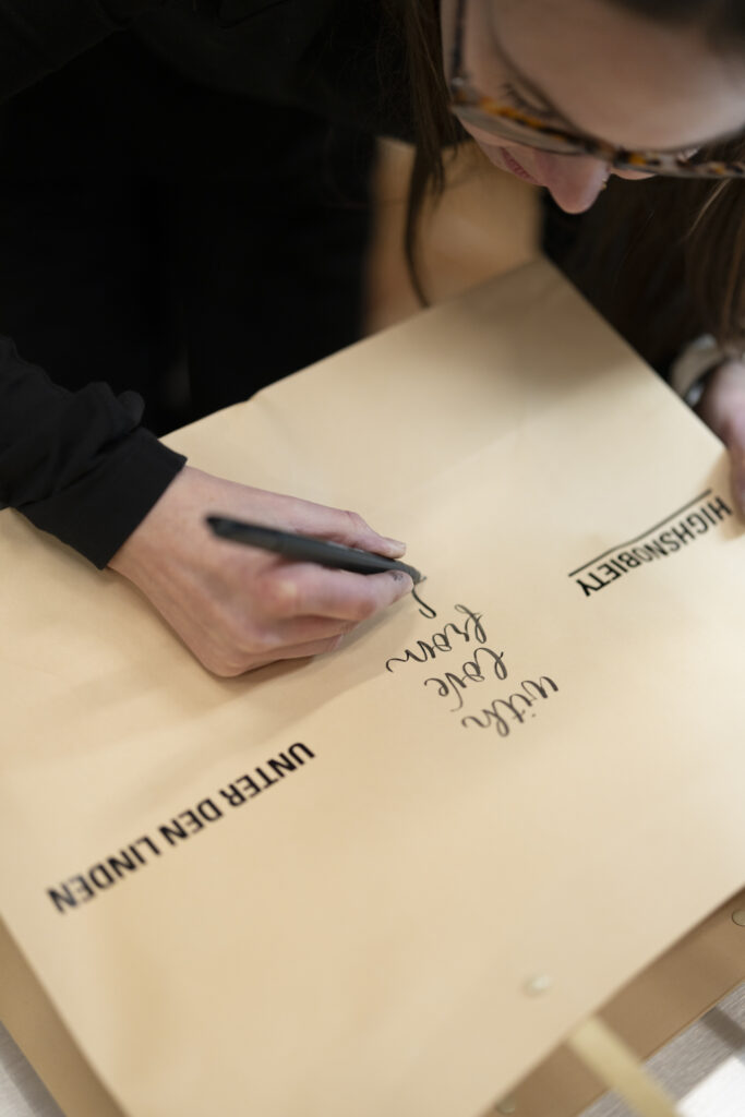 Es ist eine innovative Technik, die vielen von uns noch unbekannt ist und eine einzigartige Möglichkeit bietet, sich kreativ auszudrücken. Ich biete Handlettering-Workshops für verschiedene Events an, wie z.B. Influencer-Events und Mitarbeitenden-Events. Die Workshops können individuell angepasst werden, um den Wünschen deiner Gäst:innen oder Mitarbeitenden gerecht zu werden – von kurzen 30-minütigen Einführungen bis hin zu intensiven 4-stündigen Kursen.